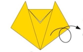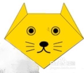 将整个面反过来,并画上小猫的眼睛、鼻子、嘴巴、胡须,一个小猫就折好了