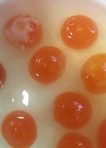 用尖刀(或剪刀)将肉一头中间部位慢慢刺到尾(不要穿),肉缝刺成咸蛋黄大小,将咸蛋黄一个个塞进去,用牙签封口.