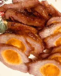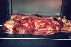 腌制好的肉用锡纸垫底,放入230度烤箱中烤12分钟;准备水和麦芽糖1:1(150:150)烧开,待12分钟到了拿出,用麦芽甜品将肉刷一遍;继续烤12分钟,拿出再刷一遍;继续再烤12分钟再刷一遍,将肉翻个身刷上麦芽糖水;再烤12分钟搞定,出炉!