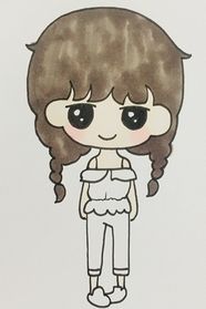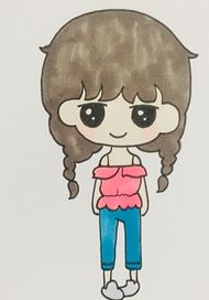 最后给衣服用红色和蓝色组合涂上,一个可爱的女孩就画好啦。