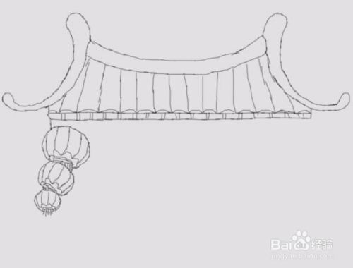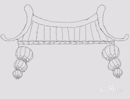 再在房子的右侧再画出右侧悬挂的灯笼,如图所示: