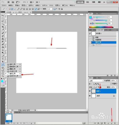 1、新建PS画布,新建一个透明画布,点击添加【直线工具】。