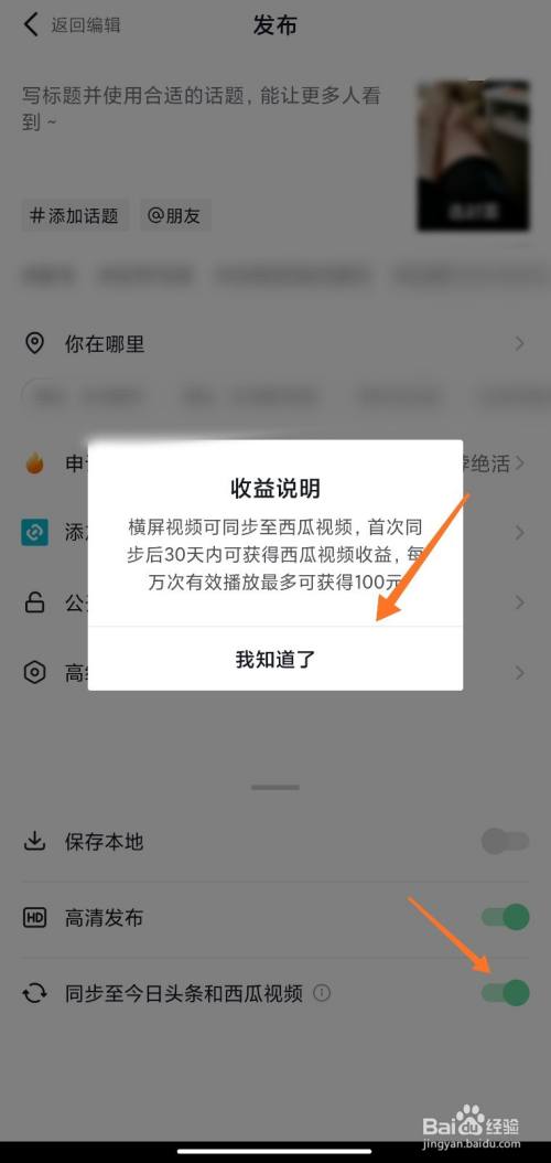 底部页面中点击开启【同步至今日头条和西瓜视频】。