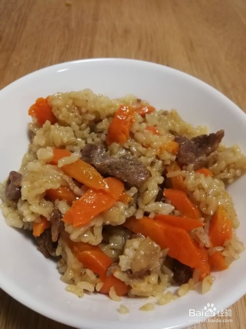 羊肉翻炒变色加入洋葱翻炒,加胡萝卜,加生抽,继续翻炒2-3分钟,尝盐味,视喜好加点盐,和平时炒菜咸度差不多就好。加上米后会淡一些,正好。