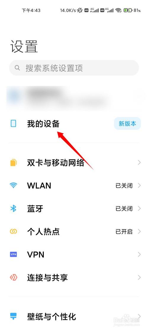 在设置页面点击我的设备的选项。