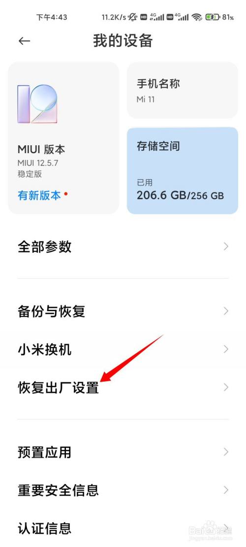点击恢复出厂设置