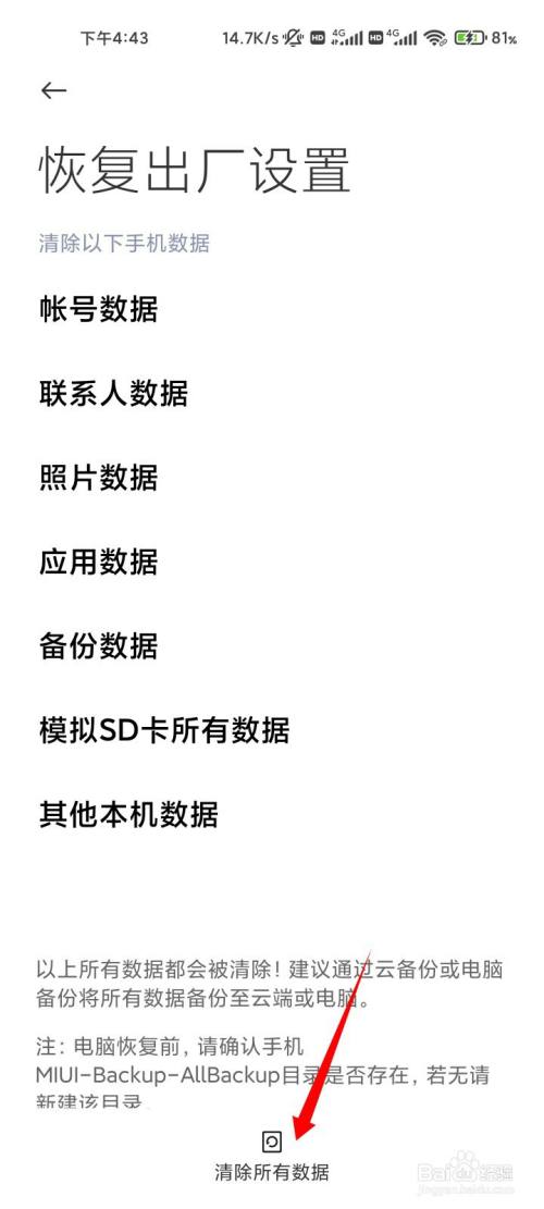点击清除所有数据的选项即可。