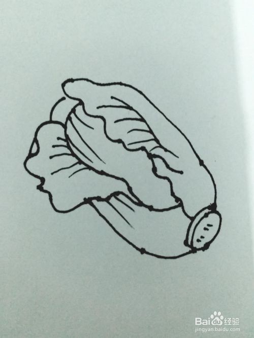 画出大白菜的一边轮廓,画的时候要充分考虑到大白菜的整体形状,要比较符合实际。
