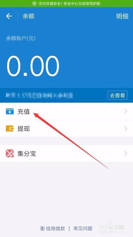 这时会打开支付宝的余额页面,点击“充值”菜单项。