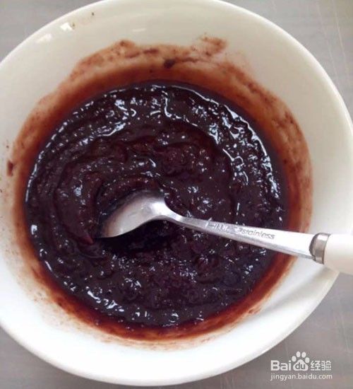 把适量的豆沙馅倒入碗里,加入少许的温水搅拌均匀。