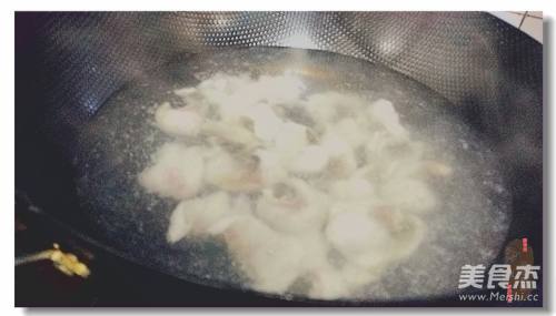 9水沸、调小火,将鱼片展开放入;
