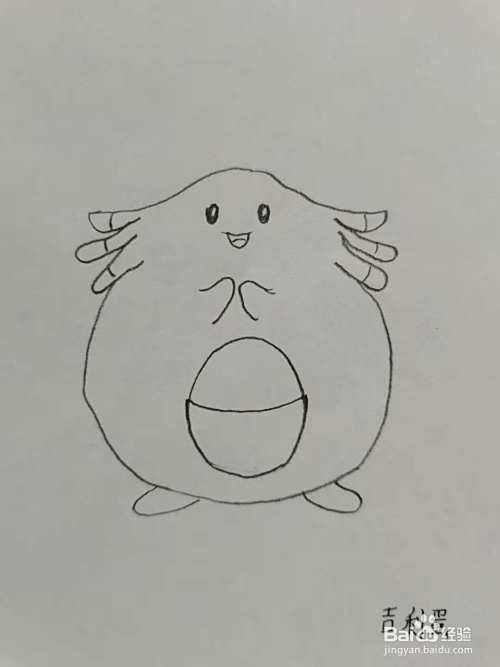 第一步,我们画吉利蛋的身体轮廓和耳朵。