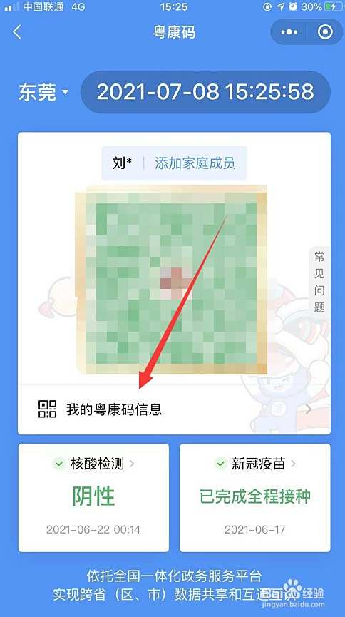 此时,跳转界面后,点击“我的粤康码信息”一栏