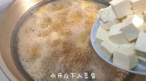 11水开后,下入豆腐。