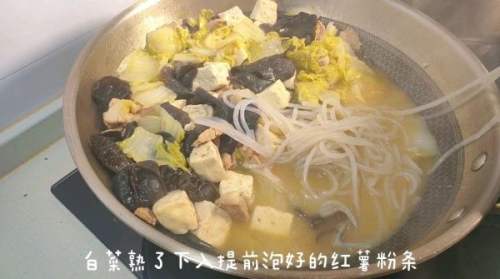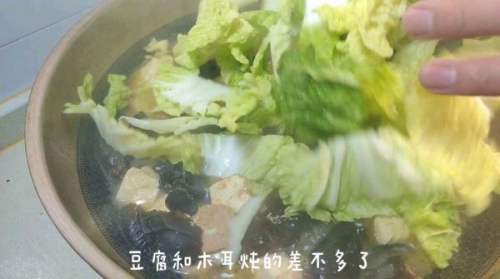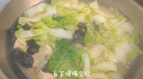 16白菜慢慢变软,再多炖10分钟。