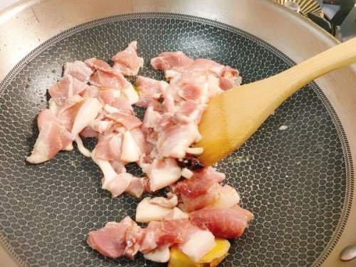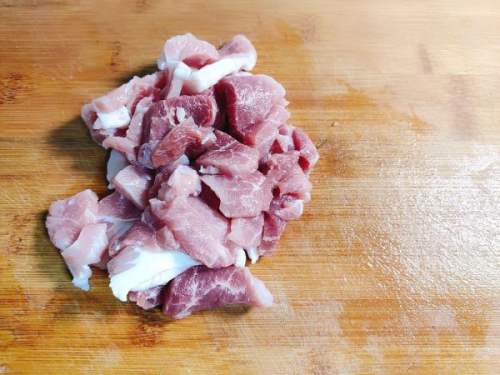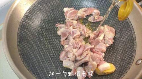 6放入猪肉,翻炒。