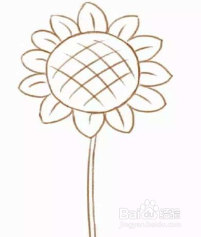 然后我们就来给向日葵画上枝干啦,一般我们见到的向日葵都是非常高的,所以枝干可以画的长一些,但是不要画的太细,枝干可以从上往下越来越粗,这样看起来比较自然
