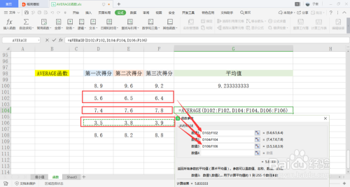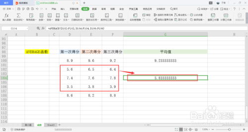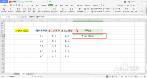 可以看到表格内,有三列数据,分别为一二三次得分,用于计算平均值。