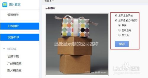 设置图片水印:在存储空间中选择“设置水印”,进入水印设置页面,可以选择水印显示的内容和在图片中的位置。