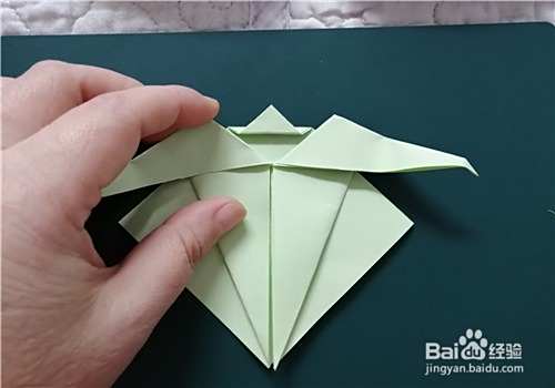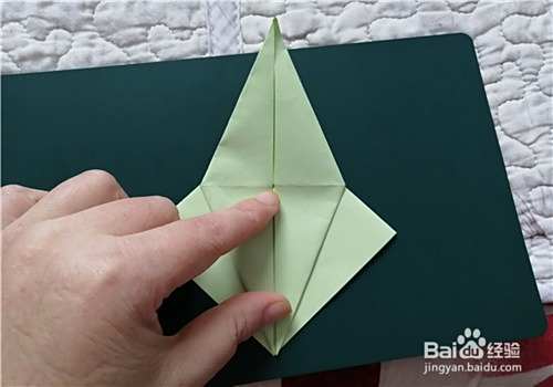 我们把两侧的边向内折,再把角打开向上拉,如图所示。