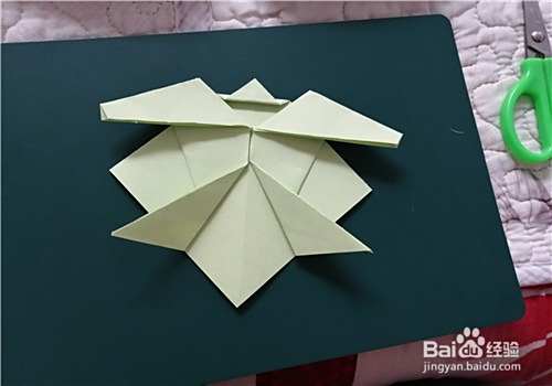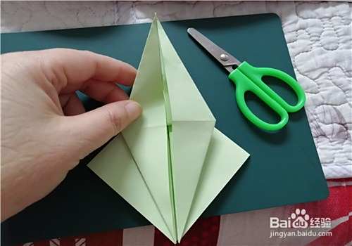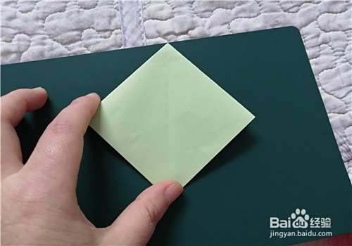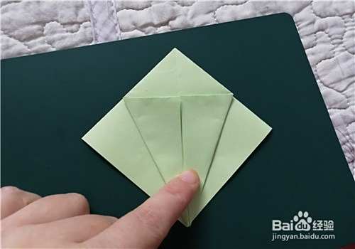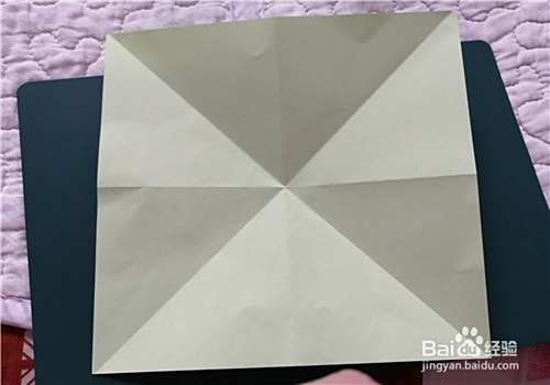 先把彩纸的两角对折折出米字形,按照折痕折成图二的样子。