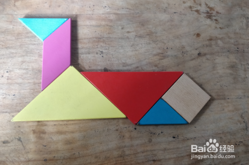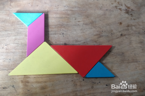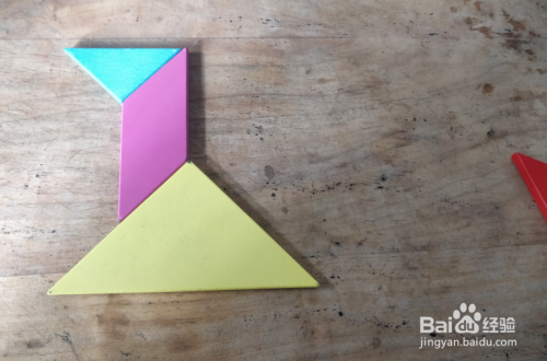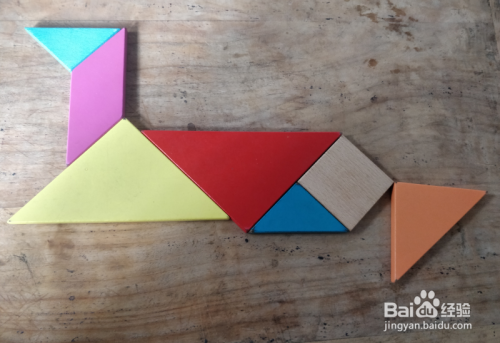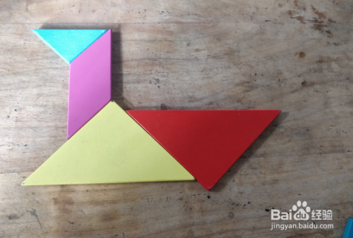 摆上橙色三角形,放在右侧挨着,如图。这样就拼组好了。