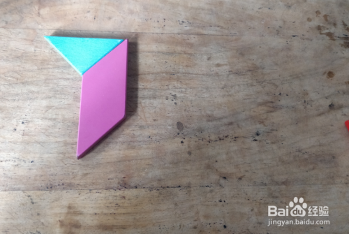 摆上蓝色三角形,直角向下,下面摆上平行四边形挨着,如图。
