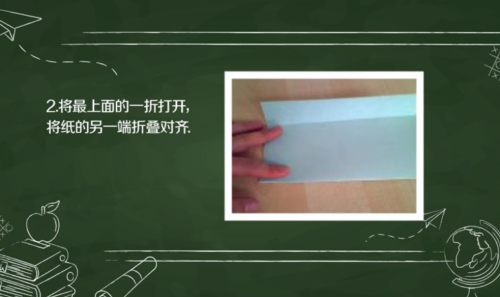 2将最上面的一折打开,将纸的另一端折叠对齐。