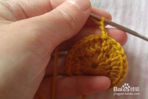 第3圈钩法:起3个辫子针,在第一个辫子针里面钩织2个长针,在第个辫子针里面钩织一个长针,下面都是按照这样的顺序进行,即隔一针加一个长针,同样也还是与第一针进行引拔针连接。
