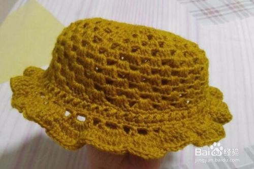 21圈:在20圈起一个辫子针,方法同第20圈,即在第一个辫子针和最后一个辫子针里钩2个长针,其余的辫子针都是钩一个长针,在上一圈是短针的地方还是短针,依次这样的进行将21圈完成,钩完这一圈,埋线,适合男宝宝的帽子就大功告成。