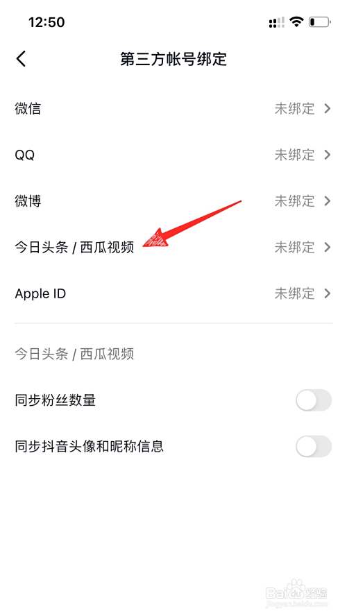 在第三方帐号绑定的页面里,再绑定今日头条账号。