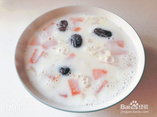 倒入牛奶,煮10分钟,牛奶就浓了,汤里弥漫着木瓜的味道