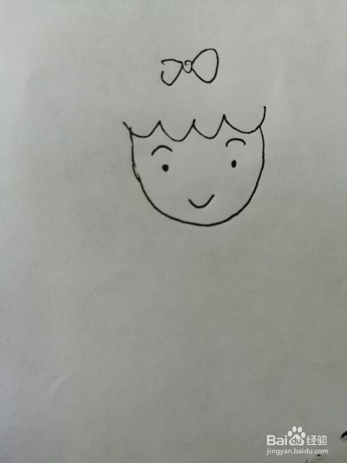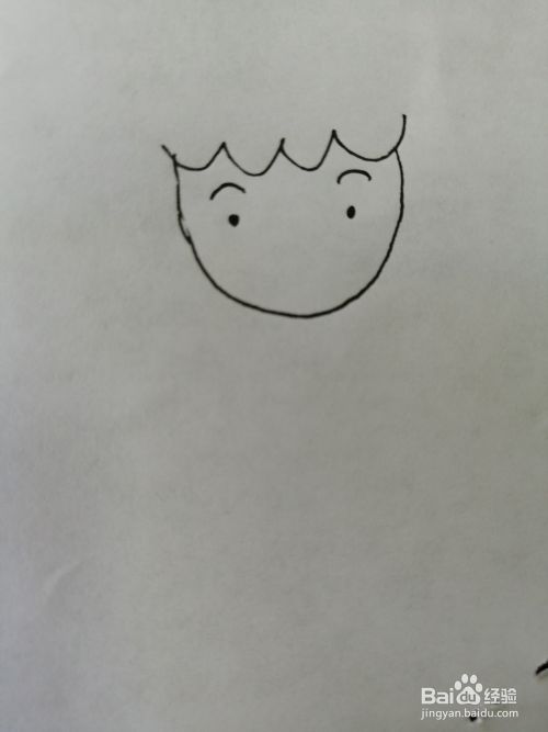第三步,接着在眼睛下面画出一条小圆弧线的嘴巴。