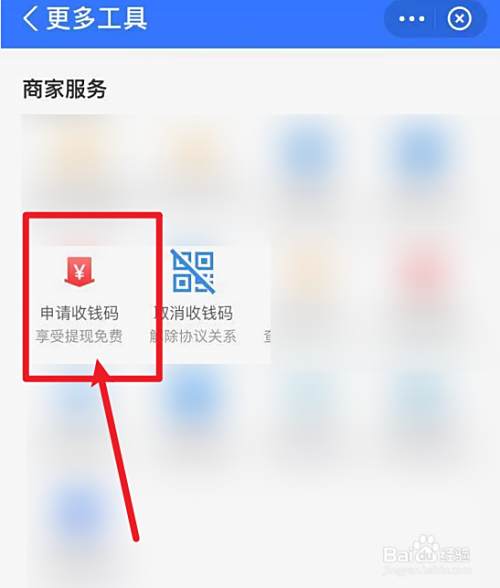 然后点击更多工具进入,在商家服务界面点击申请收钱码;