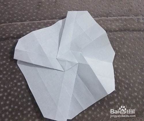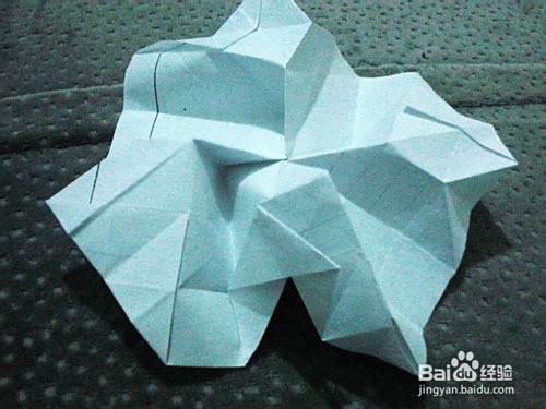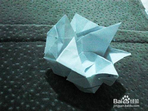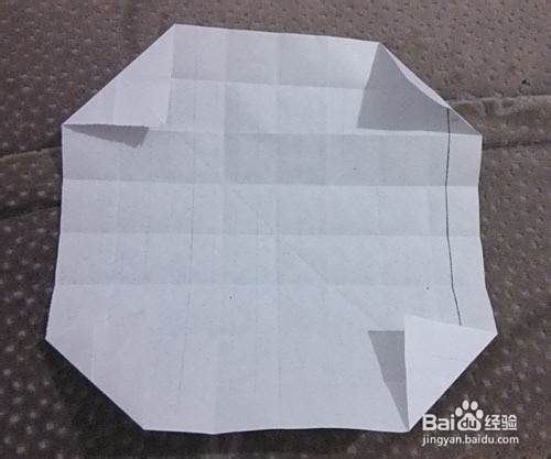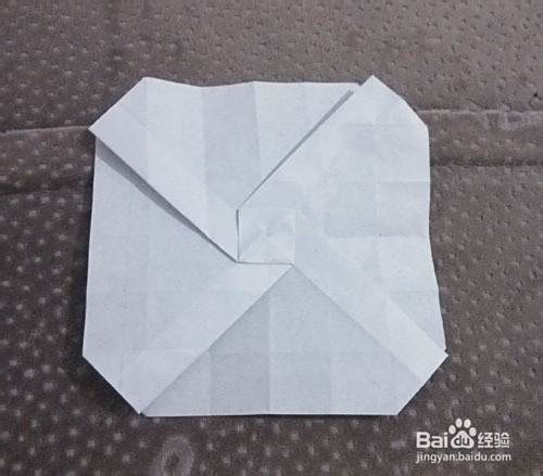 四个角都以同样的方式进行折叠,折叠完以后就将其四个角往下折叠,一个压一个,最后结果如图所示。