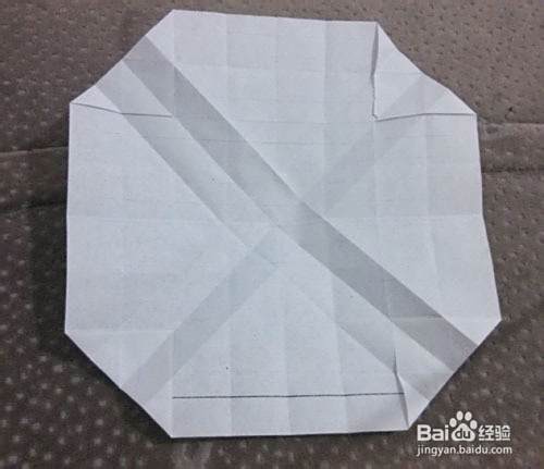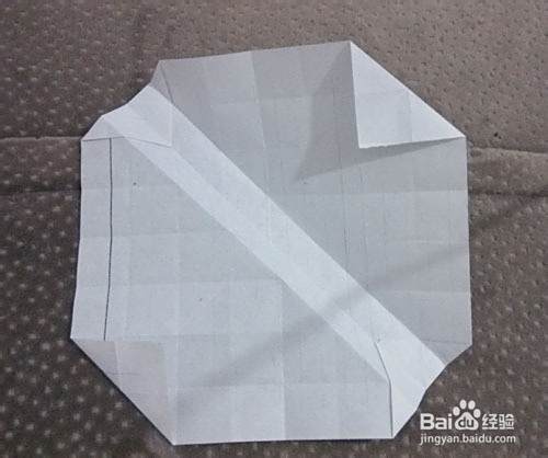 打开以后将其小方格的对角线折叠一下,弄成如图所示的样子。
