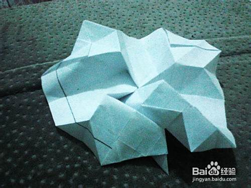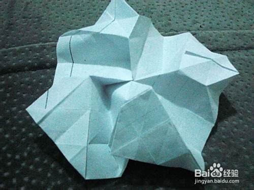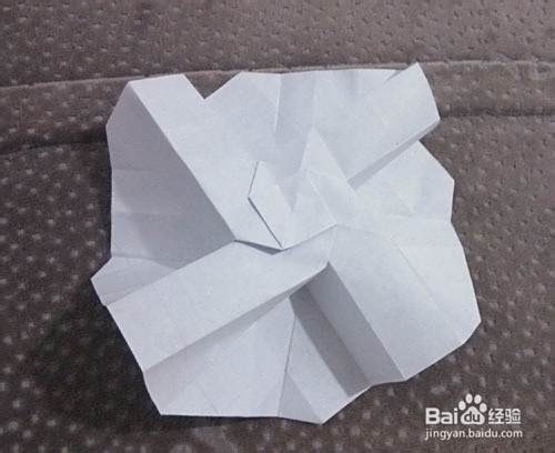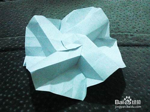 然后把每一个边都慢慢的往外拽,下面的变尽量往外翻,美丽的玫瑰就折叠成了,会了吗?如果不会大家可以给我留言。