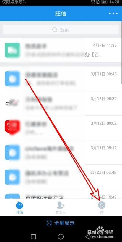在手机上打开阿里旺旺后,点击右下角的我选项卡。