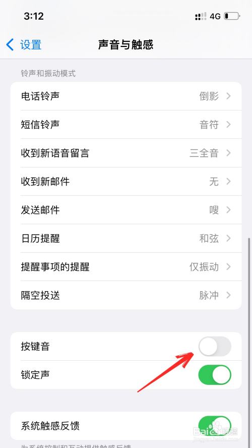 在声音与触感的页面里,找到按键音功能。