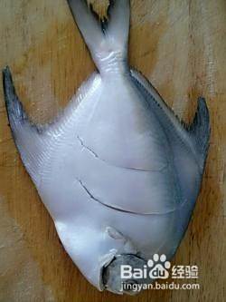 2.平鱼两面打花刀,以便入味。