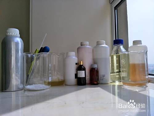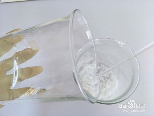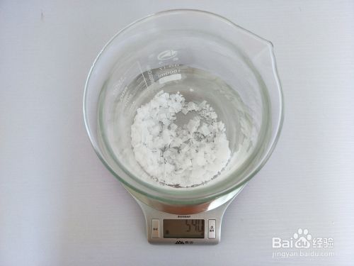 称取54G苛性钠、称取108G精致水,将精致水缓慢倒入苛性钠烧饼中并搅拌【搅拌中会有难闻的气体,注意戴口罩并通风】,待搅拌清澈后放一边降温。