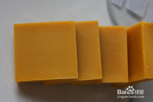 将皂液倒入模具中放置3-4天之后,当皂液已经凝固了,就可以脱模了。