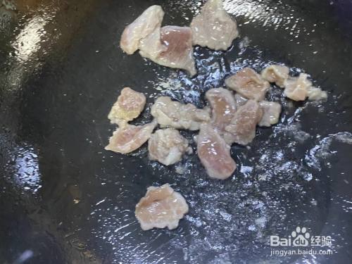 将肉片炒熟备用。
