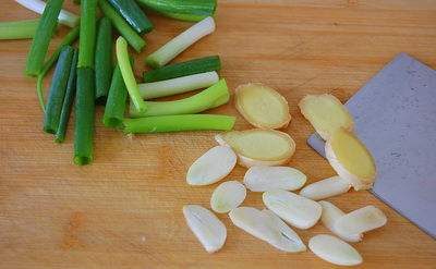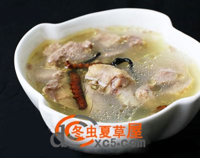 2冬虫夏草用温水洗净泥沙;姜、葱白洗净、切片,待用。