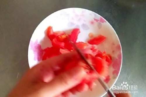把西红柿洗净,去掉蒂部,再切成小块,如果时间比较充足,还可以把西红柿用开水烫一下或者在火上烤一下把皮撕去。去不去皮无妨影响不大,蒂部是一定要去掉的。