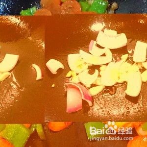 加入胡萝卜继续炒 香肠炒加入香菇炒
