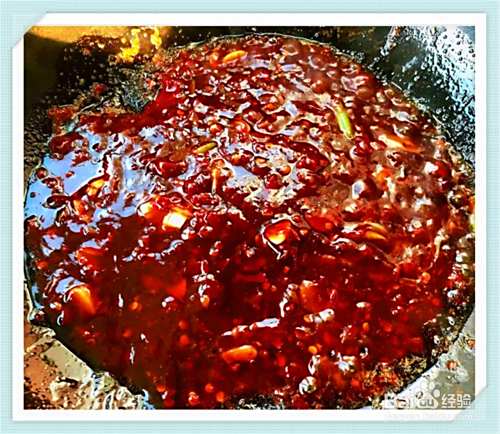 放入郫县豆瓣酱、糖、蚝油,翻炒出红油