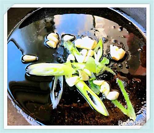 锅中倒入油,加热,放入葱姜蒜炒到爆香
