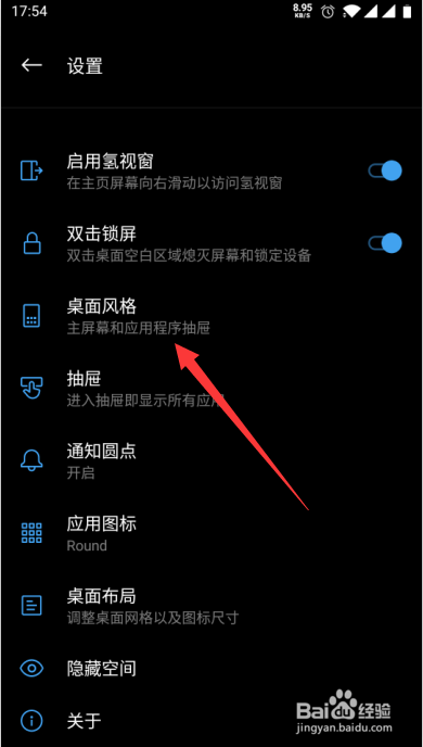 第3步进入到主屏幕设置后,在主屏幕设置中可以看到桌面风格的功能,这里点击该功能。