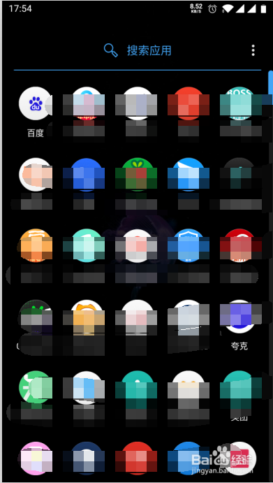 第1步我们向下滑动,如果可以看到如图所示的所有应用程序的话,那么表示这个抽屉还在,如果没有的话,那么我们需要返回到主屏上去。